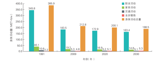 預計2020年和2030年中國成年居民平均身體活動總量還將繼續(xù)下降。